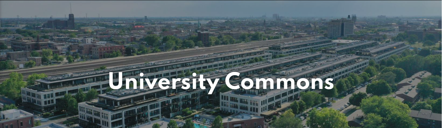 University Commons is the former South Water Market. Originally completed in 1925, the six buildings served for over 80 years as the fruits market of Chicago. There are 38 different floor plans available to purchase from the developer. While some are more common than others with each resident being able to select different finishes, many units, while the same layout. have different bathroom finishes and kitchen finishes.