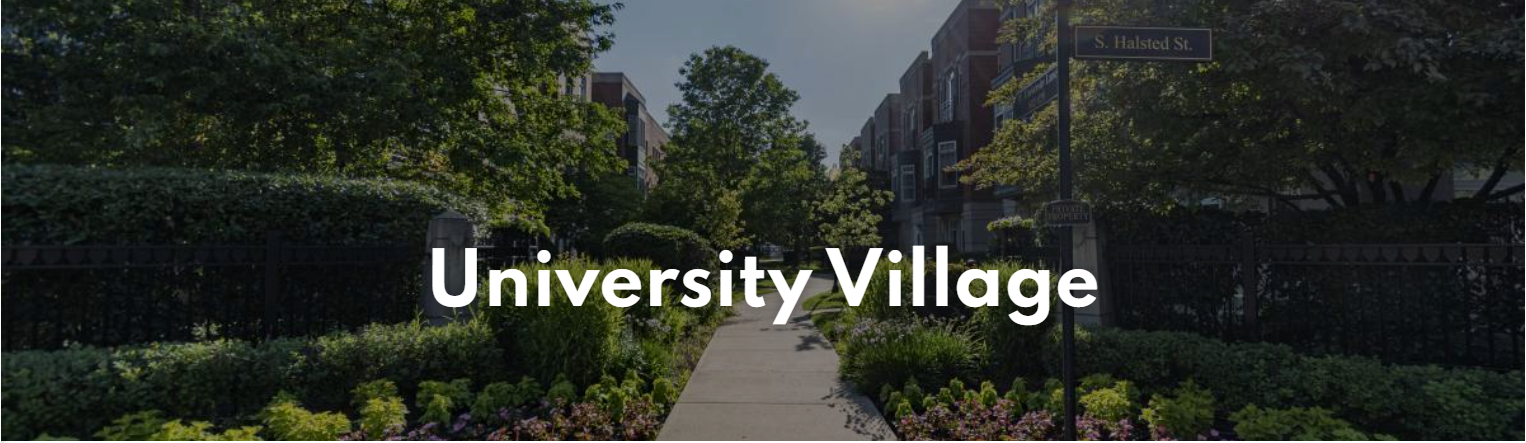 University Village HOA (Homeowners Association) Is made up of 507 condos, townhomes and single family homes built on 26 acres in the city of Chicago in the backyard of University of Illinois. Located between Little Italy and Pilsen, the boundaries of this development are 90/94 (highway) to the east, Morgan Street to the west, Maxwell Street to the north & 15th Street to the south.