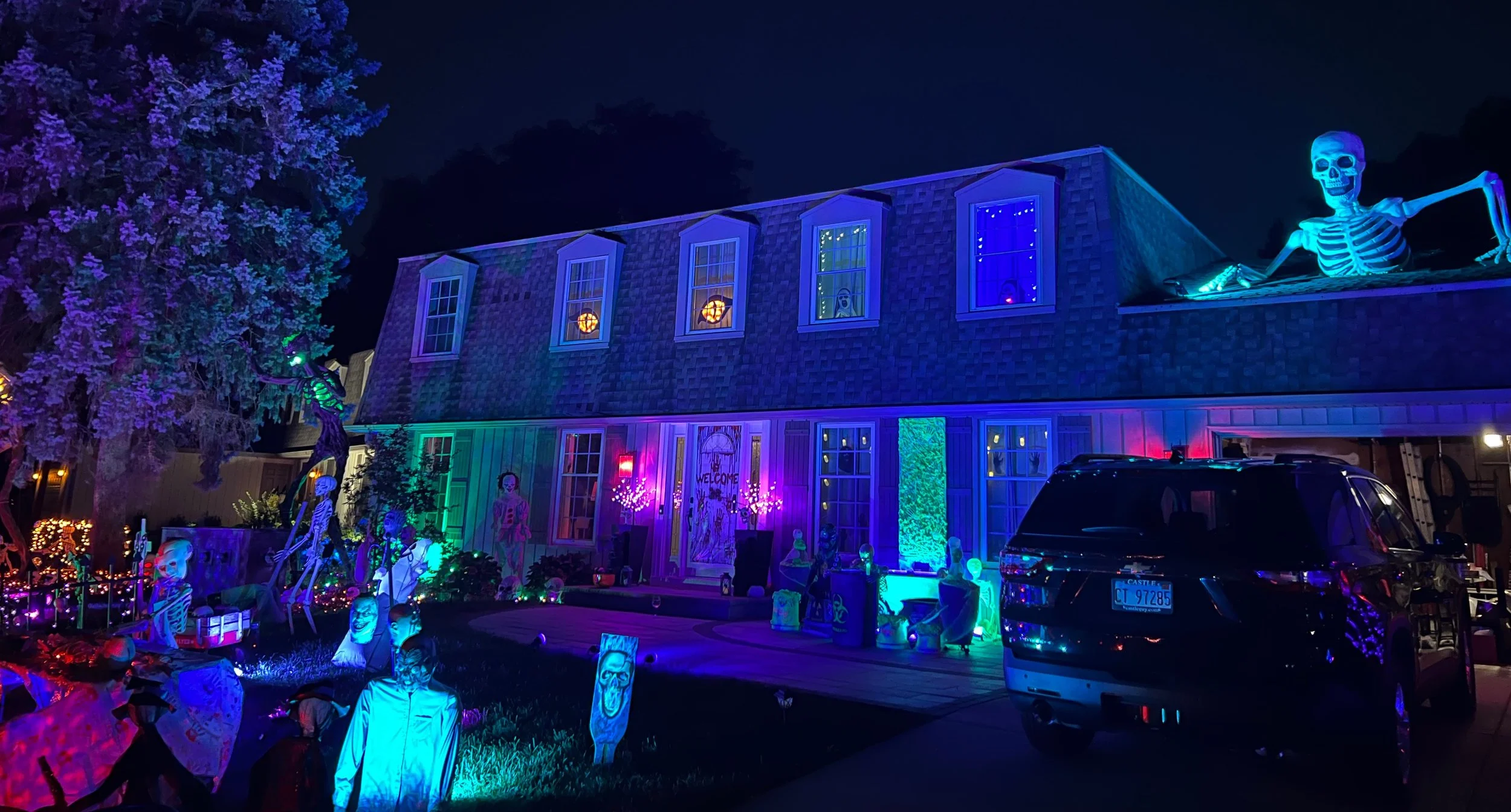 On Halloween night only, the display expands into a full front- and backyard walk-through—so don’t miss your chance to step right into the action!