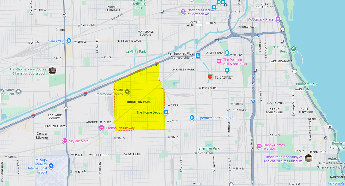 Nestled along the South Branch of the Chicago River on the city’s Southwest Side, Brighton Park is a neighborhood rooted in hard work, cultural pride, and quiet transformation. Bounded by 31st Street to the north, 39th Street to the south, Western Avenue to the east, and Pulaski Road to the west, this close-knit community lies just minutes from downtown, the University of Illinois at Chicago (UIC), and the bustling corridors of Little Village and Pilsen — offering affordable living with unbeatable access.