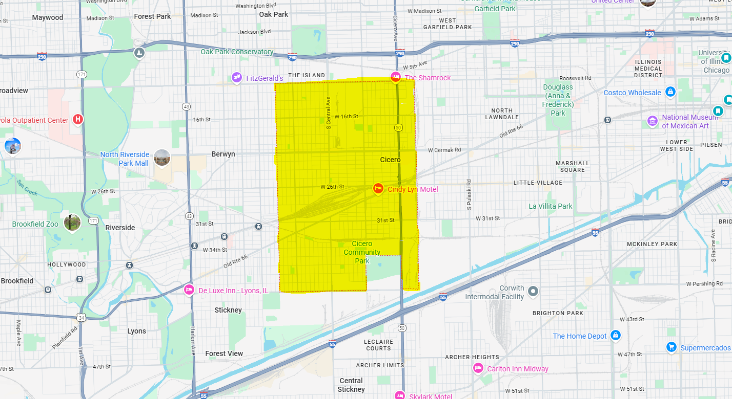 Tucked just west of Chicago’s city limits along the Des Plaines River, Cicero is a proud, hardworking community with deep roots in industry, immigration, and cultural pride. Bounded by Roosevelt Road to the north, 31st Street to the south, Harlem Avenue to the east, and Central Avenue to the west, this Cook County town sits at the crossroads of history and progress — where generations of families have built lives of resilience, tradition, and ambition.