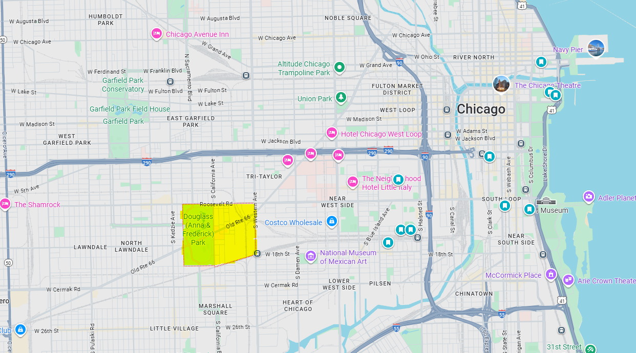 Nestled just west of the Chicago skyline, Douglas Park is a neighborhood of deep roots, rich culture, and quiet transformation. Bordered by Roosevelt Road to the north, 26th Street to the south, California Avenue to the east, and Pulaski Road to the west, this Near West Side community lies minutes from the Loop, the University of Illinois at Chicago (UIC), and the bustling corridors of Pilsen and North Lawndale — offering a central location with a strong neighborhood soul.