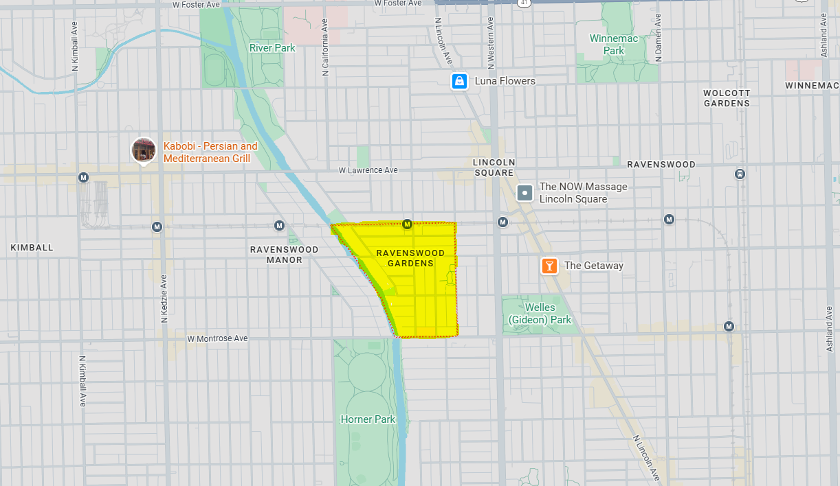 Tucked between the bustling neighborhoods of Lincoln Square, North Center, and Ravenswood, Ravenswood Gardens is a peaceful, residential enclave that feels like a well-kept secret — a place where wide streets, single-family homes, and a strong sense of community offer a rare suburban-style lifestyle within the city. Bounded by Foster Avenue to the south, Peterson Avenue to the north, Pulaski Road to the east, and California Avenue to the west, this compact but proud neighborhood lies just minutes from the Brown Line, downtown, and the North Branch Trail — making it one of Chicago’s most underrated and family-friendly places to call home.