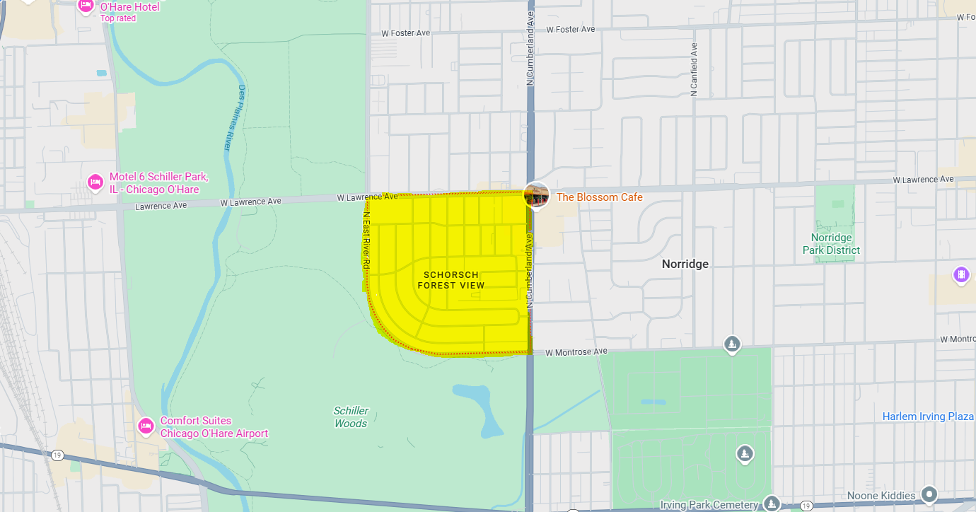 Tucked in the heart of the Northwest Side, Schorsch Forest View is a peaceful, low-key neighborhood that offers spacious homes, tree-lined streets, and a true sense of escape — all within Chicago’s city limits. Bounded by Irving Park Road to the south, Montrose Avenue to the north, Narragansett Avenue to the east, and Cumberland Avenue to the west, this residential enclave sits just minutes from O’Hare International Airport, the Kennedy Expressway, and the bustling retail corridors of Harlem and Devon — making it a smart, practical choice for families, first-time buyers, and city workers seeking value, safety, and serenity.